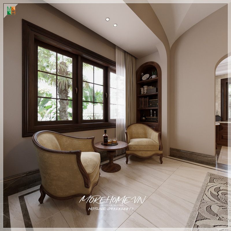 Không gian thiết kế nội thất tân cổ điển sang trọng quý phái nơi nghỉ ngơi thư giãn cho gia chủ sau những giờ làm việc mệt mỏi.