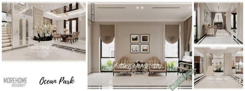 Nội thất màu sắc nâu trầm được sử dụng xuyên suốt trong thiết kế công trình Ocean Park với phong cách tân cổ điển sang trọng, giúp tạo sự đồng nhất cho cả không gian biệt thự