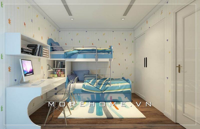 Tủ quần áo gỗ công nghiệp với thiết kế âm tường tiện dụng phù hợp cho phòng ngủ 2 bé trai